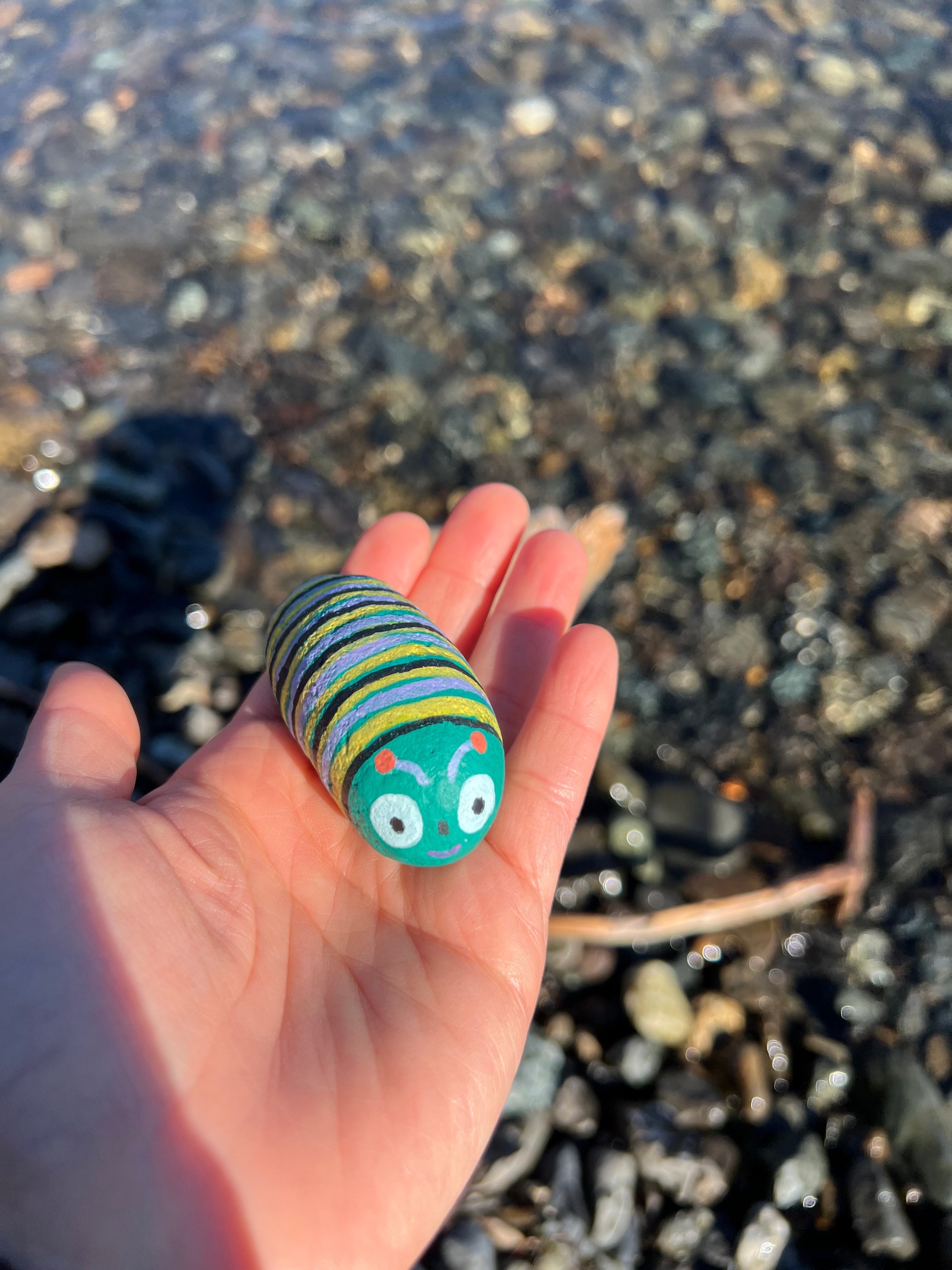 Wiggleton Caterpillar Rock is lovingly painted with high-quality acrylics for vibrant, lasting colors. Sealed with a protective UV-resistant coating, it's perfect for brightening up both indoor and outdoor spaces.
